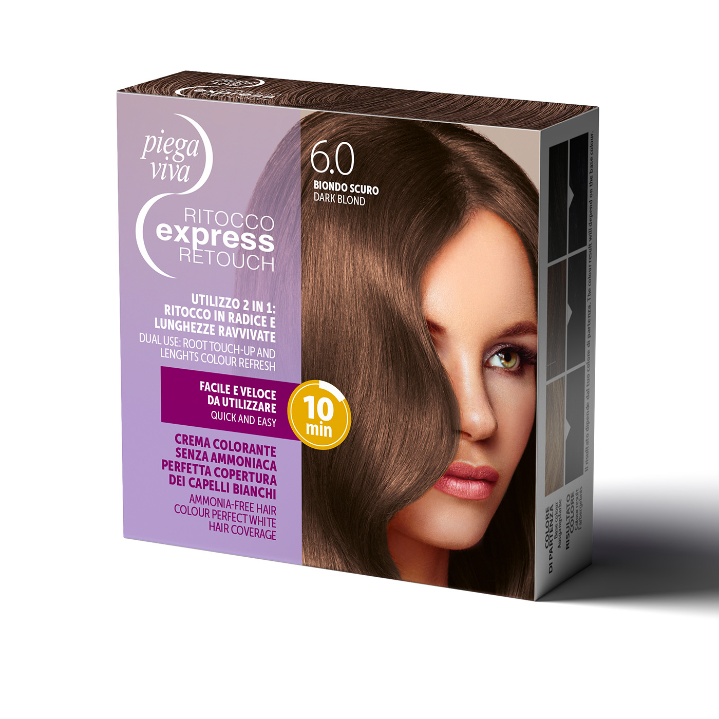 Piegaviva Ritocco Express è il trattamento colore ideale per chi desidera mantenere una chioma impeccabile tra una colorazione e l’altra. La crema colorante senza ammoniaca garantisce una copertura perfetta dei capelli bianchi, rispettando la fibra capillare e mantenendo un aspetto naturale. Progettato per essere facile e veloce da usare, questo kit permette un doppio utilizzo 2 in 1: ritocco preciso della radice e ravvivatura del colore sulle lunghezze. Un alleato indispensabile per un look sempre curato, senza attese.