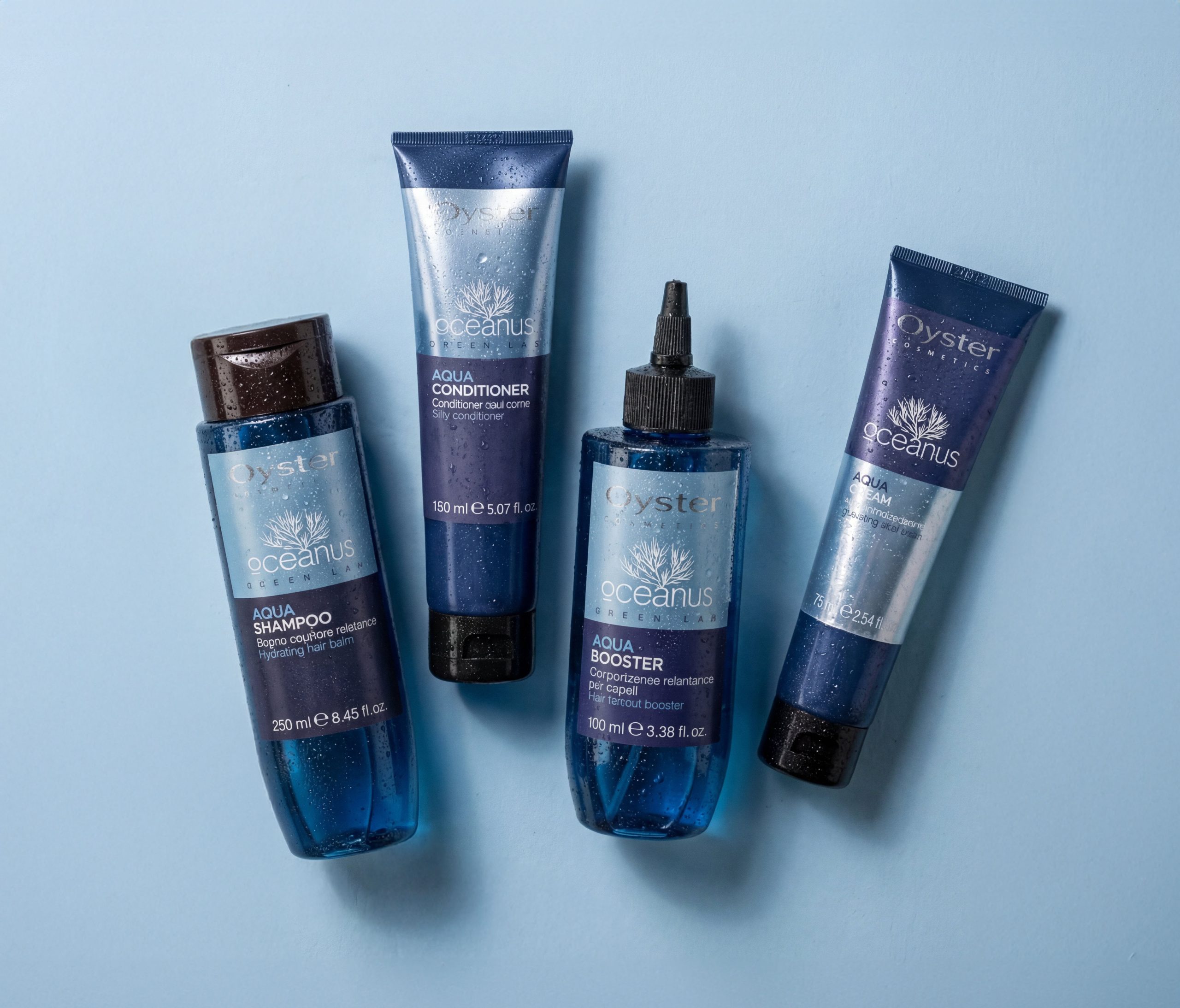Con acido Ialuronico, estratto d’alghe e complesso Oceanus. Prodotti senza SLES, parabeni, EDTA, con packaging reciclato.